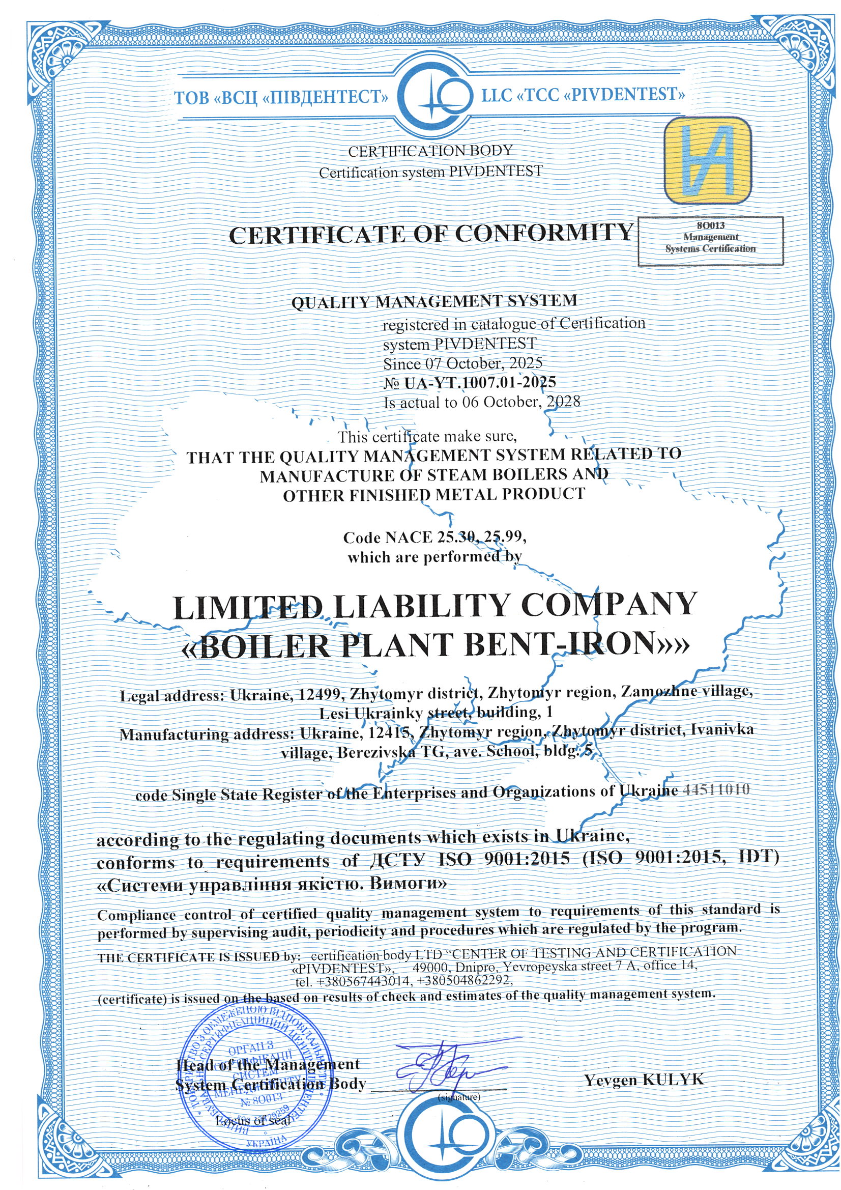Wytwornice pary Bent-Iron wyposażone są w nowoczesne systemy automatyki oparte na sterownikach Siemens. Wszystkimi układami można sterować za pomocą panelu dotykowego znajdującego się na szafie sterowniczej lub zdalnie za pomocą systemu dyspozytorskiego i zdalnego monitoringu.